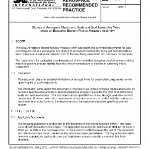 This SAE Aerospace Recommended Practice (ARP) addresses the general requirements for data recording procedures, packaging, and storing of aerospace elastomeric seals and seal assemblies which include an elastomeric element prior to the seal being assembled into hardware components.