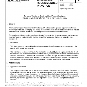 This SAE Aerospace Recommended Practice (ARP) addresses the general requirements for data recording procedures, packaging, and storing of elastomeric seals and seal assemblies which include an elastomeric element prior to the seal being assembled into hardware components.