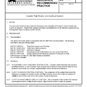 This document recommends criteria for the design and installation of Autopilot, Flight Director and Autothrust Systems. These three systems are highly interrelated and will be referred to generically as an Integrated Flight Guidance System (IFGS).