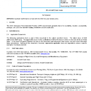 This SAE Aerospace Recommended Practice (ARP) recommends general criteria for availability, location, accessibility, stowage, use, and crew member training needed for aircraft crash axes.