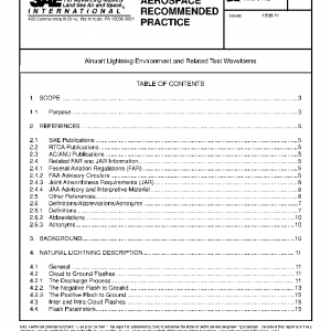 The environment and test waveforms defined in this SAE Aerospace Recommended Practice (ARP) account for the best lightning data and analysis currently available. The quantified environment and levels herein represent the minimum currently required by certifying authorities, consistent with the approach applied in related lightning documents.
