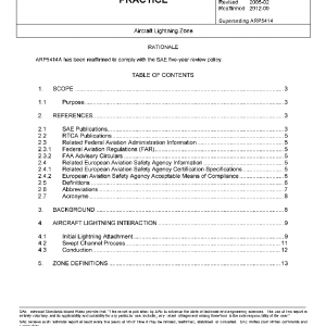 This SAE Aerospace Recommended Practice (ARP) defines lightning strike zones and provides guidelines for locating them on particular aircraft, together with examples. The zone definitions and location guidelines described herein are applicable to Parts 23, 25, 27, and 29 aircraft. The zone location guidelines and examples are representative of in-flight lightning exposures.