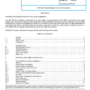 This paper describes a recommended practice and procedure for the correlation of test cells that are used for the performance testing of APU (auxiliary power unit) engines. Test cell correlation is performed to determine the effect of any given test cell enclosure and equipment on the performance of an engine relative to the baseline performance of that engine. The baseline performance is generally determined at the original equipment manufacturer (OEM) designated test facility. Although no original equipment manufacturer (OEM) documents are actually referenced, the experience and knowledge of several OEMs contributed to the development of this document. Each engine Manufacturer has their own practices relating to correlation and they will be used by those OEMs for the purpose of establishing certified test facilities.
