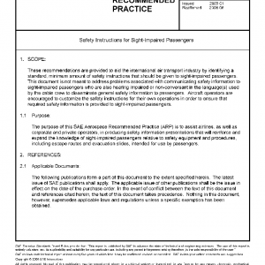 These recommendations are provided to aid the international air transport industry by identifying a standard, minimum amount of safety instructions that should be given to sight-impaired passengers. This document is not meant to address problems associated with communicating safety information to sight-impaired passengers who are also hearing impaired or non-conversant in the language(s) used by the cabin crew to disseminate general safety information to passengers. Aircraft operators are encouraged to customize the safety instructions for their own operations in order to ensure that required safety information is provided to sight-impaired passengers.