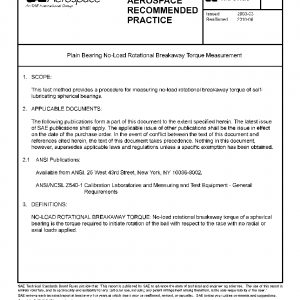 This test method provides a procedure for measuring no-load rotational breakaway torque of self-lubricating spherical bearings.