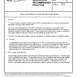 This SAE Aerospace Recommended Practice (ARP) provides guidelines for abuse load testing of a deployable Individual Video System (IVS).