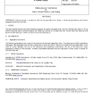This test method outlines the recommended procedure for performing static axial limit and ultimate load tests on rolling element bearings used in airframe applications. Bearings covered by this document shall be antifriction ball bearings and spherical roller bearings in either annular or rod end configurations.