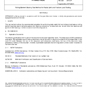 This test method outlines the recommended procedure for performing static radial limit and ultimate load tests on rolling element bearings used in airframe applications. Bearings covered by this document shall be antifriction ball bearings and spherical roller bearings in either annular or rod end configurations.