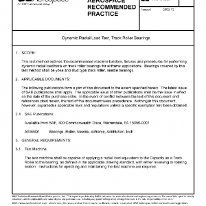 This test method outlines the recommended machine function, fixtures and procedures for performing dynamic radial load tests on track roller bearings for airframe applications. Bearings covered by this test method shall be yoke and stud type track roller, needle bearings.