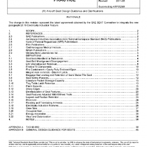This Aerospace Recommended Practice (ARP) documents a common understanding of terms, compliance issues and design criteria to facilitate certification of seat installations specific to Part 25 aircraft. This ARP provides general guidance for seats to be installed in Part 23 aircraft and Parts 27 and 29 rotorcraft and does not specify specific designs or design methods for such certification.