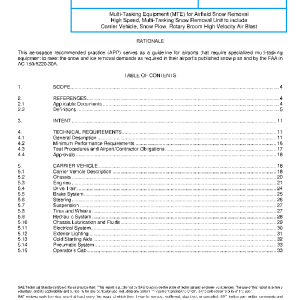 This ARP defines the minimum functionality for a vehicle to be classified as an MTE, specifically as an integrated snow and ice removal system capable of performing multiple and simultaneous functions requiring no more than one operator. MTEs may be utilized to perform additional pavement maintenance tasks such as de-ice or anti-ice, rubber removal, FOD sweeping, or others. If additional features are required, they must be defined by the airport operator as part of their MTE specification. The airport operator may add to or delete from any item of this specification to meet its requirements providing there is no compromise in safety.