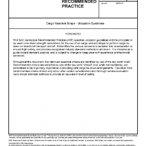 This SAE Aerospace Recommended Practice (ARP) aims at providing general utilization guidelines and calculation methods adequate to guarantee the effectiveness and ultimate load strength of tie-down/lashing arrangements performed to restrain cargo on board civil transport aircraft during flight: