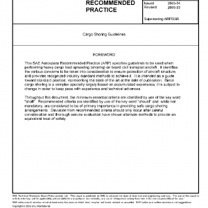 This SAE Aerospace Recommended Practice (ARP) specifies guidelines for calculating and performing shoring (load spreading) required on board civil transport aircraft whenever a piece of cargo to be carried exceeds the aircraft’s maximum allowable limits in area load, running load, or both. It provides both the engineering methods needed to properly design a shoring arrangement, and the main practical dos and donts known from experience to ensure its effectiveness in protecting the aircraft’s structure against overload.