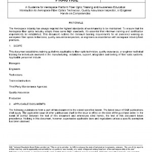 A Guideline for Aerospace Platform Fiber Optic Training and Awareness Education Introduction to Aerospace Fiber Optics Technician, Quality Assurance Inspector, or Engineer Hands-on Competencies