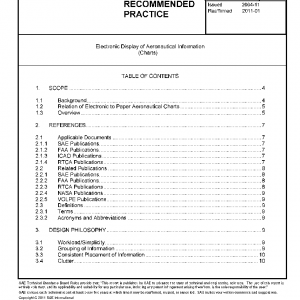 This ARP provides guidelines for the display of an electronic chart that can replace existing paper. This document addresses what information is required, when it is required, and how it should be displayed and controlled. This document does not include all the detailed specifications required to generate an electronic aeronautical chart. This document primarily addresses the human factors aspects of electronic chart display, and does not address the software, hardware or system integrity/availability issues associated with certification of an electronic chart system.