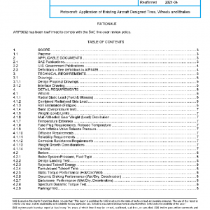 This document covers recommendations for the application of existing qualified and approved in-service fixed wing aircraft tires, wheels and brakes to military and commercial rotorcraft.