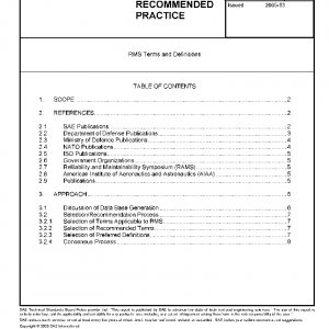 Accordingly, in October of 2003 the task of developing and revising the current SAE AIR4896 publication issued in 1995 of Recommended RMS Terms and Parameters. It is understood by individuals that participated in this project that future editions will update terminology as developments are made within the RMS community. Due to the complexity and nature of Software Reliability, we have specifically excluded “software reliability” terms from this edition. Future updates of this document will continue to reflect the converging of defense and commercial technology and standards.