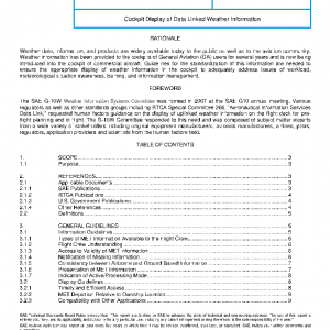 This ARP is applicable to certified equipment for the electronic display (whether installed or portable) of MET information in the cockpit. This ARP also provides a set of symbols that illustrate the depiction of data linked MET information on flight deck display systems such as Navigation Displays, Multi-function Displays, and Electronic Flight Bags. These recommendations complement standard symbology guidelines for airborne applications already in existence (see reference section for applicable documents).