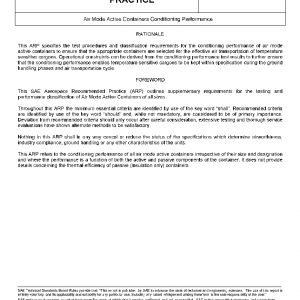 This Aerospace Recommended Practice (ARP) defines a series of test procedures to determine the temperature conditioning performance of air mode containers with active conditioning systems, a classification system for air mode containers with active condition systems, a standard means of expressing conditioning performance within each classification and a standard means of documenting test results.