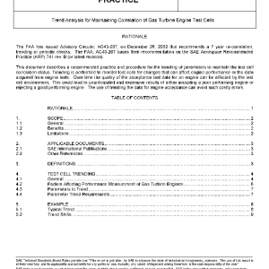 This document describes a recommended practice and procedure for the trending of parameters to maintain the test cell correlation status. Trending is performed to monitor test cells for changes that can affect engine performance or the data acquired from engine tests.