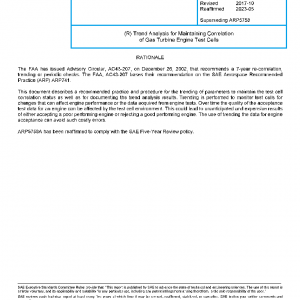 This document describes a recommended practice and procedure for the trending of parameters to maintain the test cell correlation status. Trending is performed to monitor test cells for changes that can affect engine performance or the data acquired from engine tests.