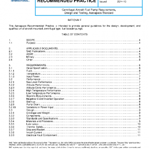 Centrifugal Aircraft Fuel Pump Requirements, Design and Testing, Aerospace Standard