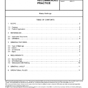 This SAE Aerospace Recommended Practice (ARP) outlines recommended ramp pavement marking standards for proper guidance and positioning of GSE on commercial transport aircraft parking and handling stands (gates), in line with International Civil Aviation (ICAO) recommendations applicable to airport aprons.