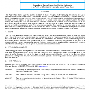 This method is designed to evaluate the coking propensity of synthetic ester-based aviation lubricants under two phase air-oil mist conditions as found in certain parts of a gas turbine engine, for instance, bearing chamber vent lines. Based on the results from round robin data in 2008–2009 from four laboratories, this method is currently intended to provide a comparison between lubricants as a research tool; it is not currently a satisfactory pass/fail test. At this juncture a reference oil may improve reproducibility (precision between laboratories); a formal precision statement will be given when there is satisfactory data and an agreed on, suitable reference oil if applicable.