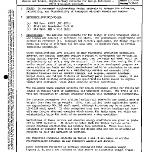 To recommend supplementary design criteria to enhance the endurance, reliability, and dependability of transport aircraft wheels and brakes.