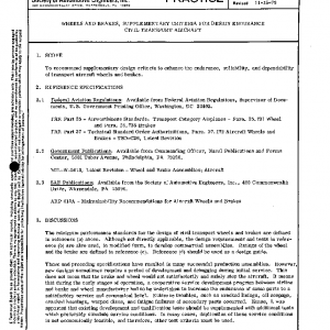 To recommend supplementary design criteria to enhance the endurance, reliability, and dependability of transport aircraft wheels and brakes.