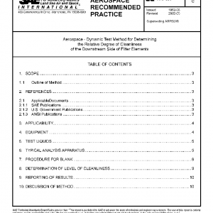 Aerospace – Dynamic Test Method for Determining the Relative Degree of Cleanliness of the Downstream Side of Filter Elements