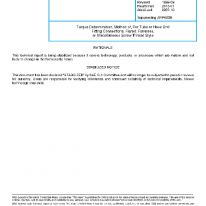 This SAE Aerospace Recommended Practice (ARP) defines a method for determining a torque value (range) for threaded fluid connections.