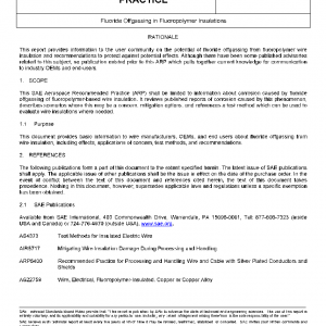 This SAE Aerospace Recommended Practice (ARP) shall be limited to information about corrosion caused by fluoride offgassing of fluoropolymer-based wire insulation. It reviews published reports of corrosion caused by this phenomenon, describes scenarios where this may be a concern, mitigation options, and references a test method which can be used to evaluate wire insulations where needed.