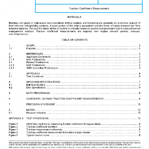 The lubricant performance capability for aero-propulsion drive systems is derived from the physical properties, chemical properties, and the transport phenomena of the oil. Viscosity, pressure-viscosity coefficient, and elastohydrodynamic (EHD) full-film traction coefficient are inherent properties of the lubricating fluid. Full-film traction coefficient is a required input for thermal performance prediction and engineering design. Traction coefficient data can be modeled and used as an input into bearing and gear analysis codes. This document describes a test method for traction coefficient measurement of 5 cSt oils under service-like conditions for high-stress Hertzian elastic contacting bodies operating under temperatures and sliding (slip) velocities found in high-speed rolling element bearings and gears.