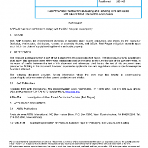 This ARP specifies the recommended methods of handling silver coated conductors and shield, by the conductor fabricator, wireinsulator, distributors, harness or assembly houses, and OEM’s. Red Plague mitigation depends upon each link in the chain of supply handling the wire and cable properly.