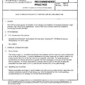 This ARP provides general information on the design and installation of threaded fasteners in high strength, high temperature applications. Some of the more common definitions of fastener terminology are also provided.
