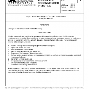 This ARP provides design guidelines based on currently available information for the impact safety design of the cabin occupant environment.