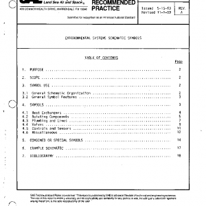 This ARP provides symbols to schematically represent aerospace vehicle environmental system components on functional flow schematic drawings and graphical computerized output. The symbols are for use on simplified diagrams that provide basic information about an environmental system.