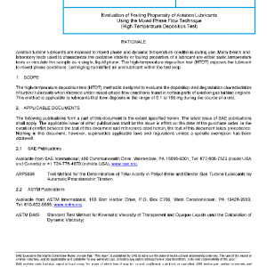 The high-temperature deposition test (HTDT) method is designed to evaluate the deposition and degradation characteristics of turbine lubricants when stressed under mixed-phase flow conditions found in certain parts of aviation gas turbine engines. This method is applicable to lubricants that form deposits in the range of 0.1 to 100 mg during the course of a test.