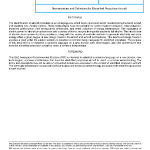 This document defines the relevant terms and abbreviations related to the design, development, and use of electrified propulsion in aircraft. This definition is provided to enable a consistent use of technical language throughout the standards developed by the E-40 committee.