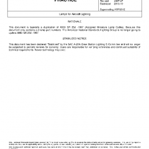 This SAE Aerospace Recommended Practice (ARP) lists the lamps in Table 1 that are recommended for the type of service indicated. This list is not intended as a catalog and does not include many types that are now in use. This specification is not applicable to Solid State Lighting Lamp Assemblies (Based LED lamps). It does, however, reflect current practice.