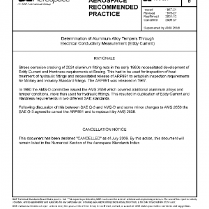 This recommended practice establishes a procedure for checking the tempers of aluminum alloys through eddy current conductivity measurements and defines criteria for acceptance or rejection.