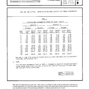 This Aerospace Recommended Practice (ARP) is intended to establish recommended installation torque value limits and test criterion for machined flared and flareless hose and tube end fitting connections.
