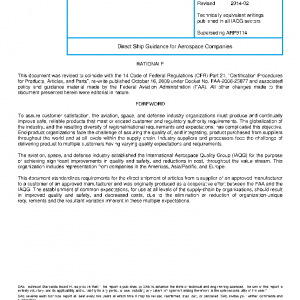 Limited to the aerospace industry, where an approved manufacturer requests a supplier to ship an article against the approved manufacturer’s quality system directly to a customer. The direct ship process is not required or applicable to standard parts or military parts. In this process the approved manufacturer is responsible for assurance that the article conforms to type design information.