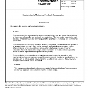 The recommendations contained herein are confined to the input and output characteristics of electrohydraulic mechanical feedback servoactuators. The information presented should be useful for standardizing the terminology and for specification of physical and performance parameters.