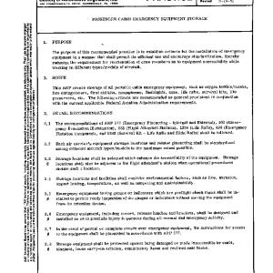 This ARP covers stowage of all portable cabin emergency equipment, such as oxygen bottles/masks, fire extinguishers, first aid kits, megaphones, flashlights, axes, life rafts, survival kits, life preservers, etc. The following criteria are recommended as general provisions in conjunction with the current applicable Federal Aviation Administration requirements.