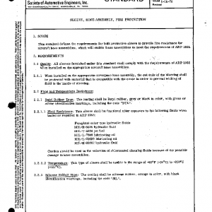 This standard defines the requirements for bulk protective sleeve to provide fire resistance for aircraft hose assemblies, which will enable these assemblies to meet the requirements of ARP 1055.