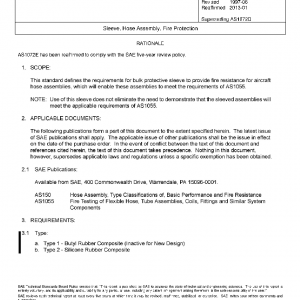 This standard defines the requirements for bulk protective sleeve to provide fire resistance for aircraft hose assemblies, which will enable these assemblies to meet the requirements of AS1055.