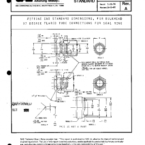 FITTING END STANDARD DIMENSIONS, FOR BULKHEAD 37 DEGREE FLARED TUBE CONNECTIONS FOR SEAL RING
