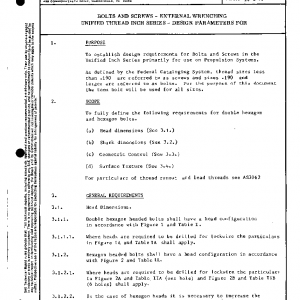BOLTS AND SCREWS – EXTERNAL WRENCHING UNIFIED THREAD INCH SERIES – DESIGN PARAMETERS FOR
